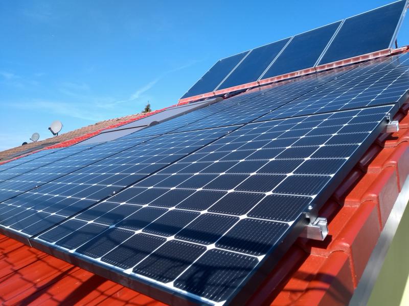 Beschreibung: Ziegeldach mit Südausrichtung, Einspeisemanagement mit SMA Homemanager, Leistungsreduzierung 70% am Netzverknüpfungspunkt.
