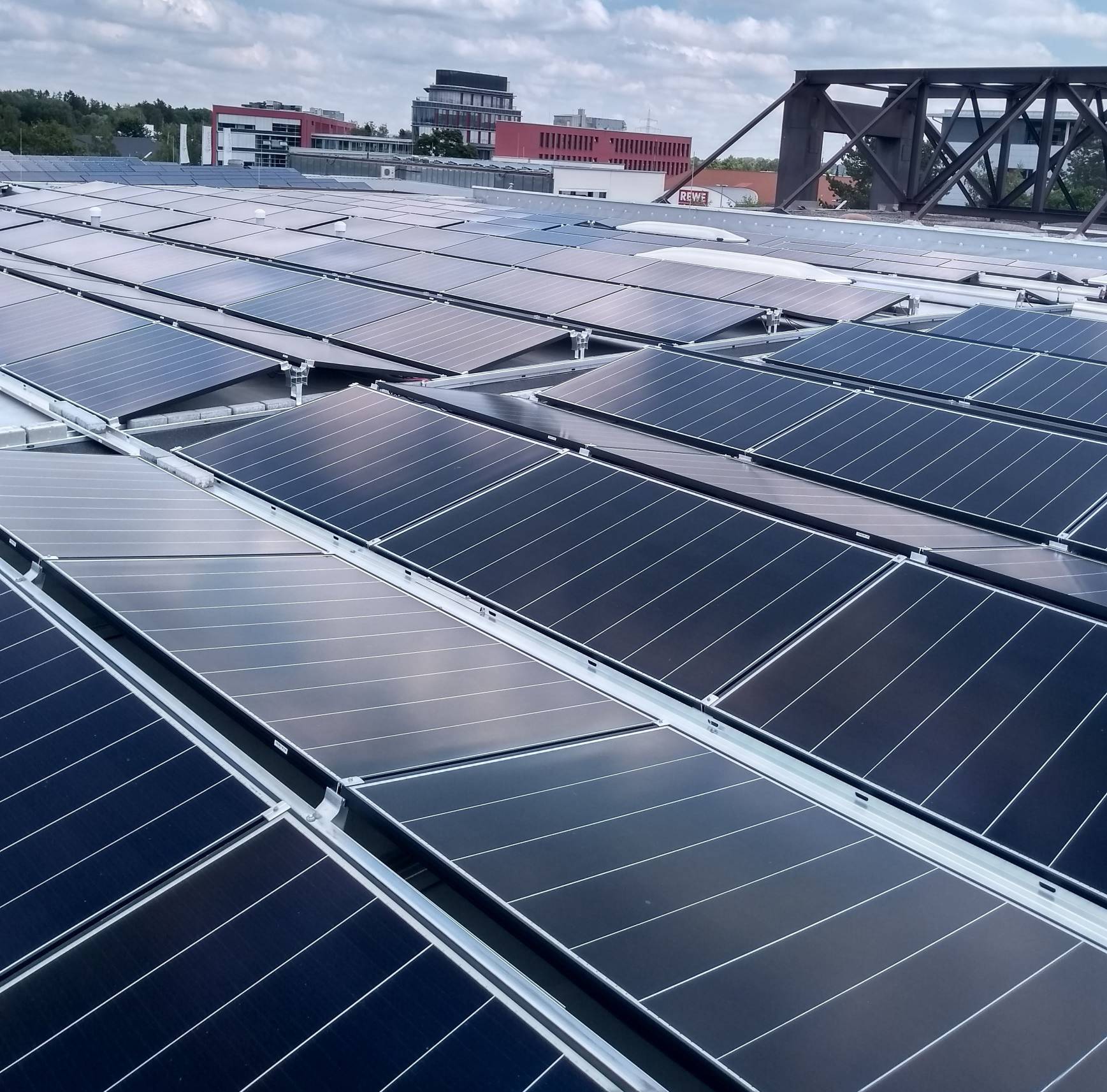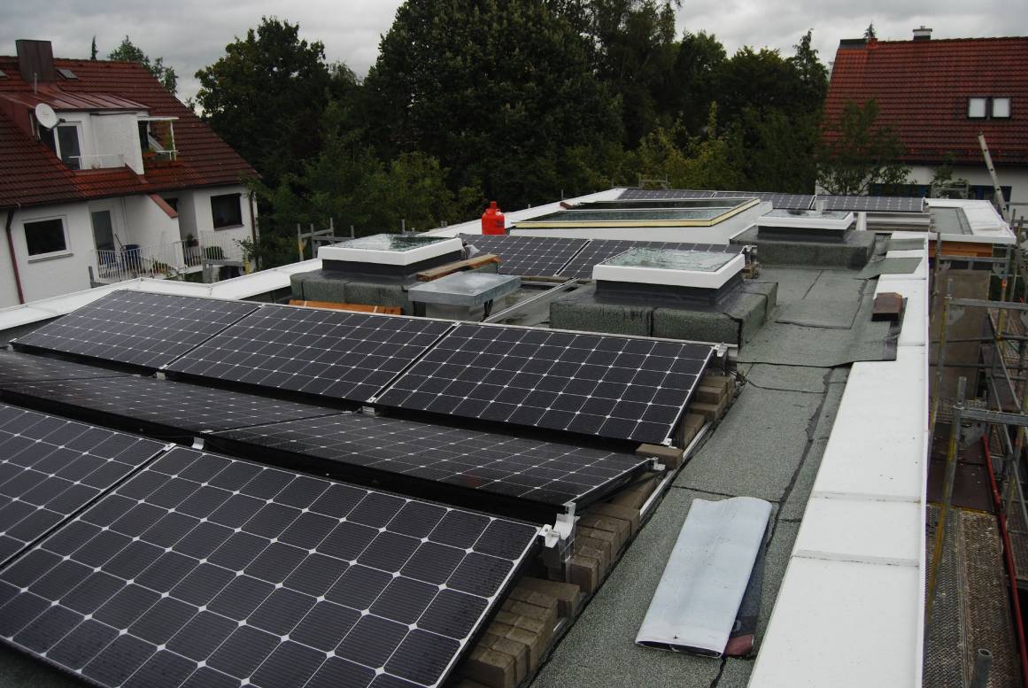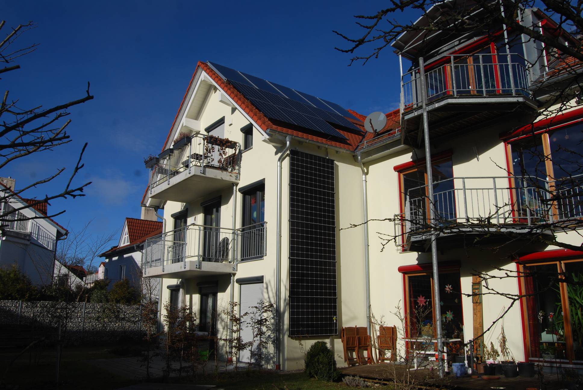 Beschreibung: Flachdach mit Ost-West und Südaufständerung, Fassadenanlage, Einspeisemanagement mit SMA Homemanager, BYD HVM 13.8.