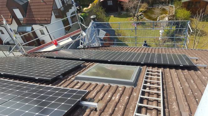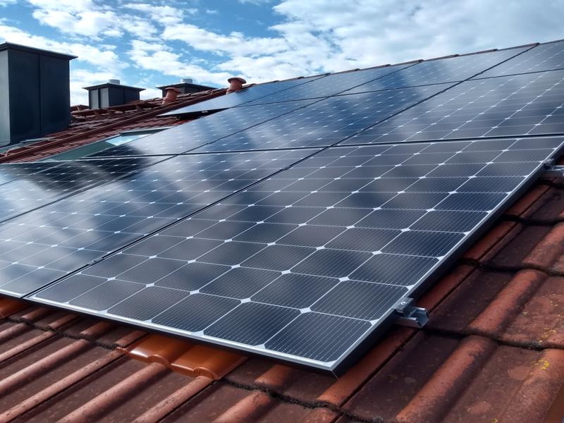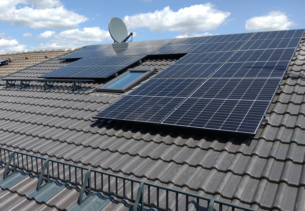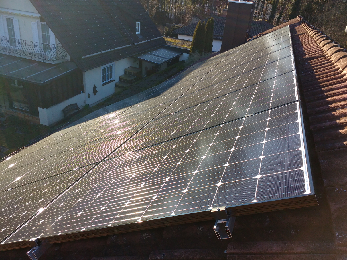 Beschreibung: Ziegeldach mit Südausrichtung, Einspeisemanagement mit Sungrow-Meter, Leistungsreduzierung 70% am Netzverknüpfungspunkt.