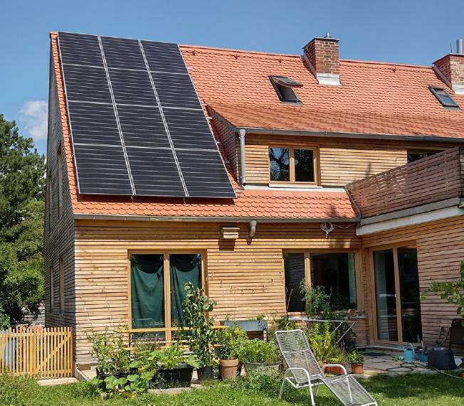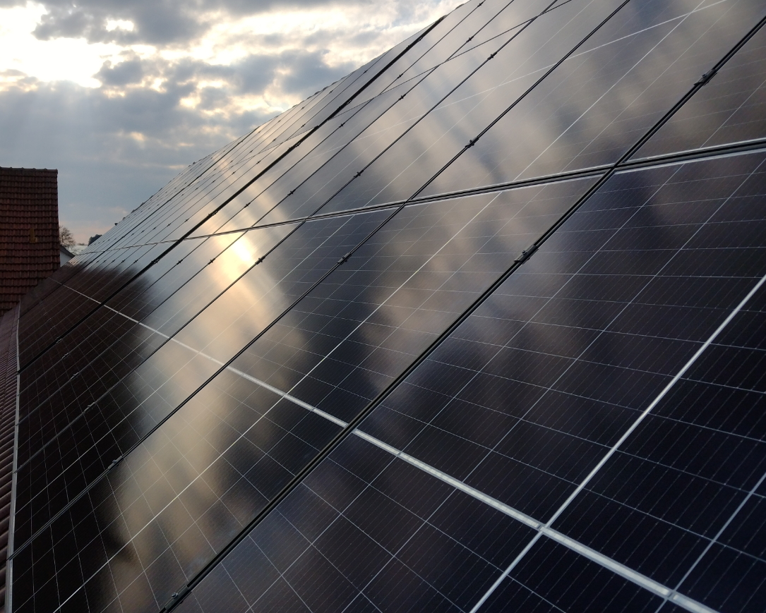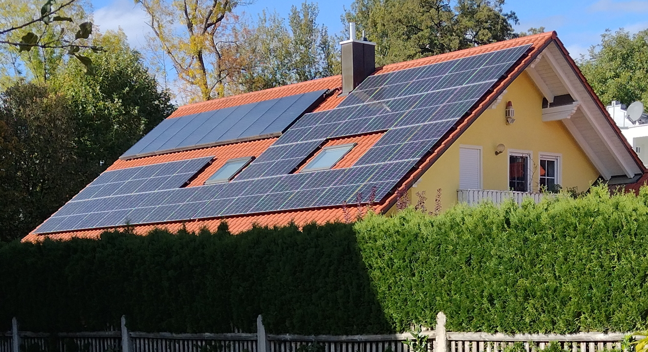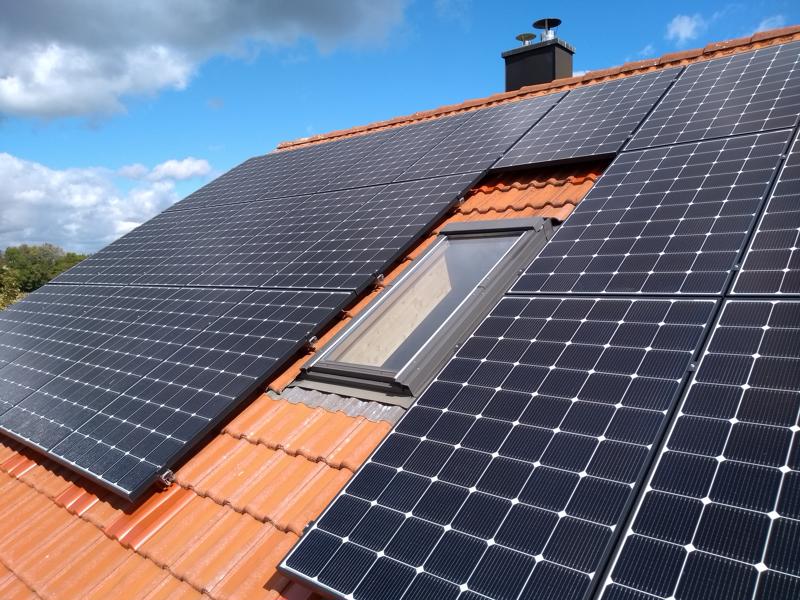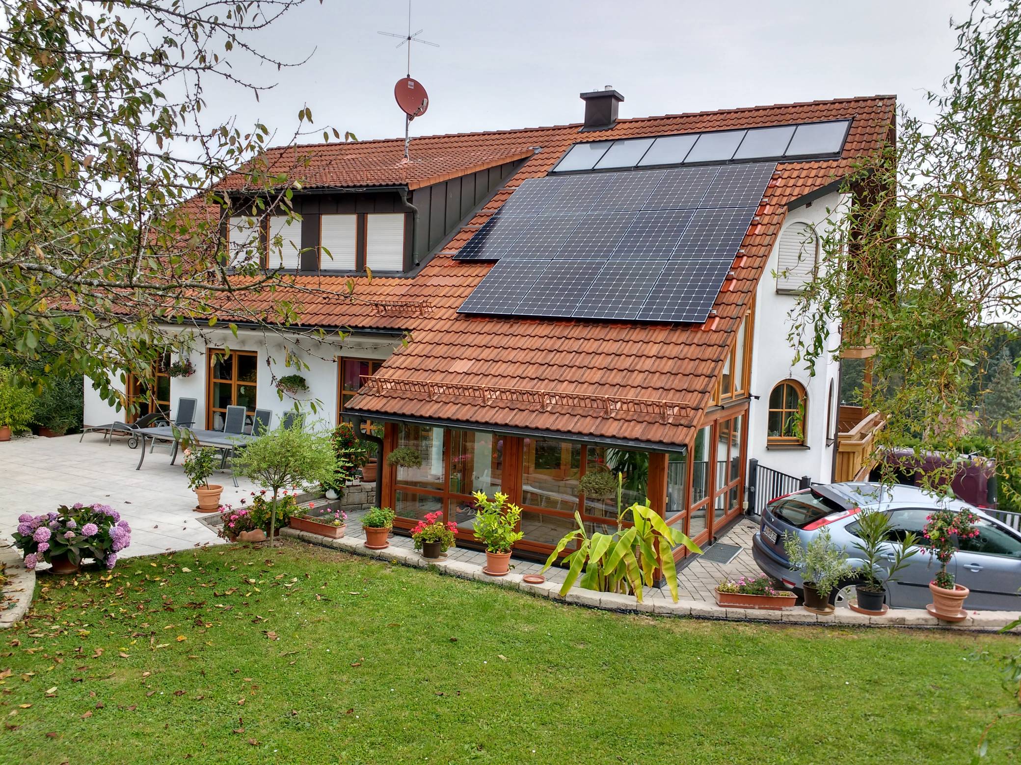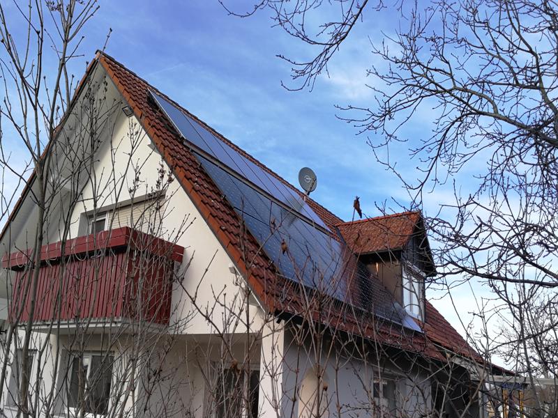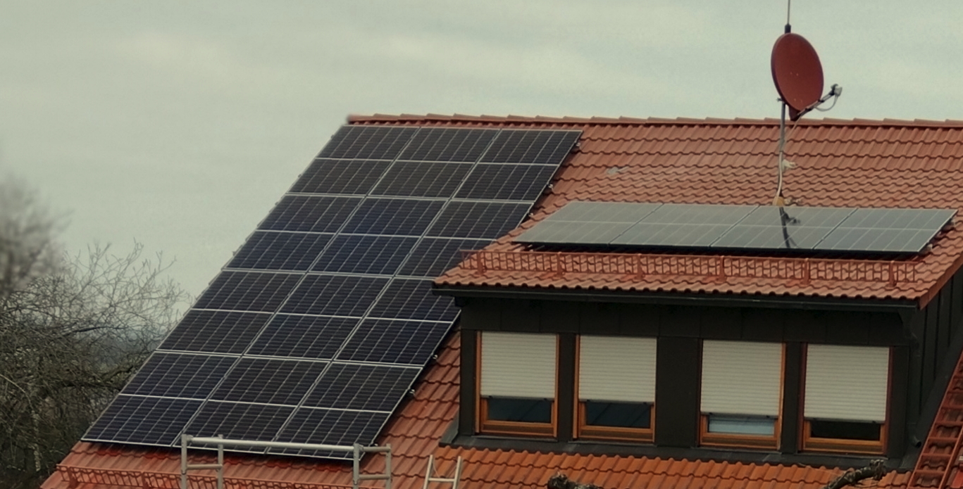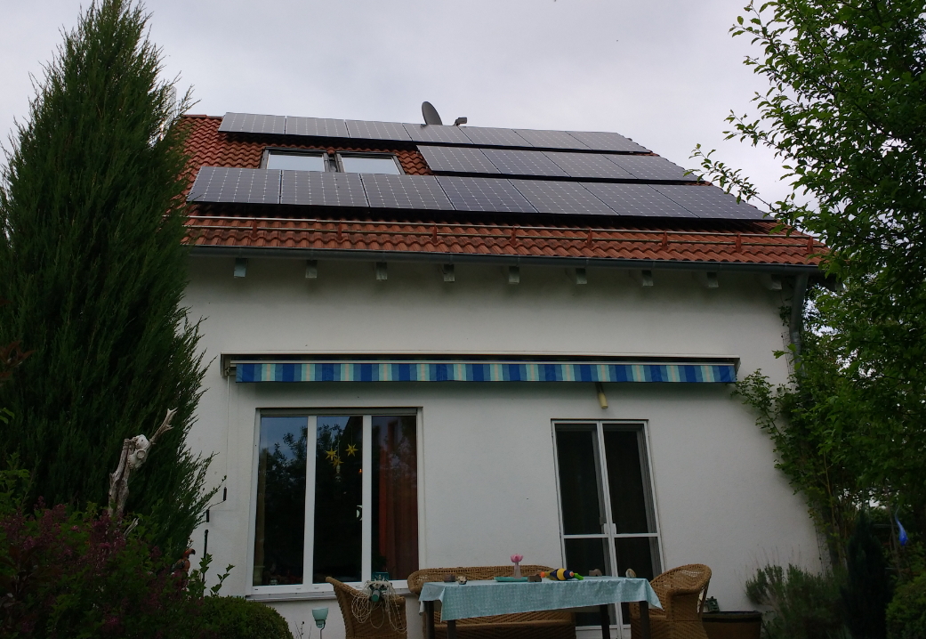 Beschreibung: Ziegeldach mit Südausrichtung, Einspeisemanagement mit SMA Homemanager 2.0, Leistungsreduzierung 70% am Netzverknüpfungspunkt.