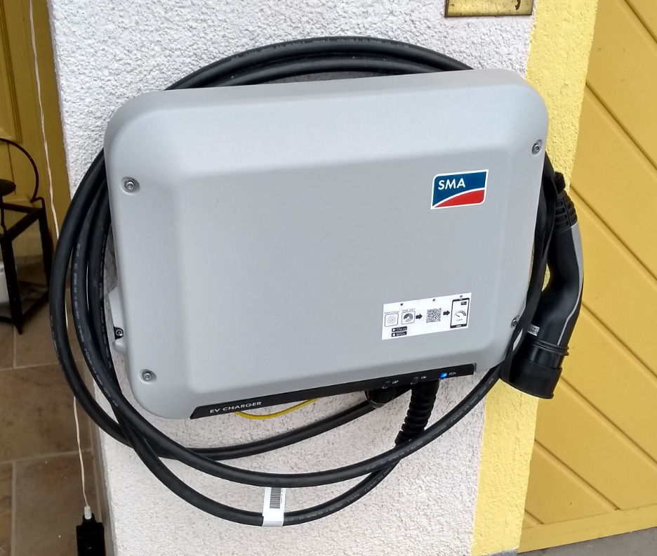 Beschreibung: Ziegeldach mit Ost-, Westausrichtung und Fassade, Einspeisemanagement mit SMA Homemanager 2.0, Leistungsreduzierung 70% am Netzverknüpfungspunkt, Wallbox SMA EVCharger für PV optimiertes Laden.